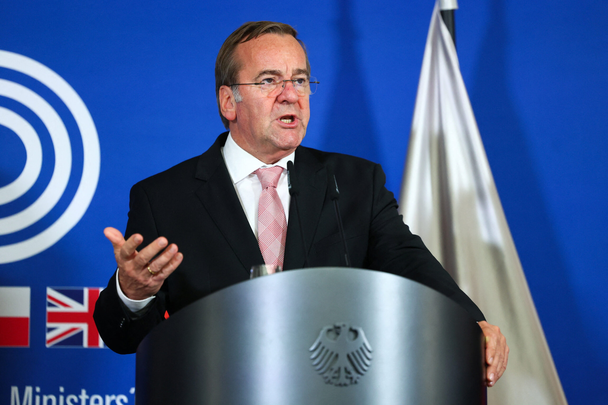 Фото: Министр обороны Германии Борис Писториус выступает на пресс-конференции после встречи министров обороны стран «Группы пяти европейских стран» (E5), Берлин, Германия, 14 ноября 2025 года. REUTERS/Christian Mang