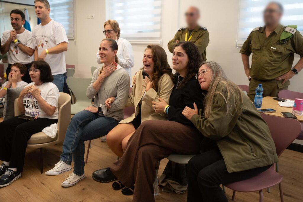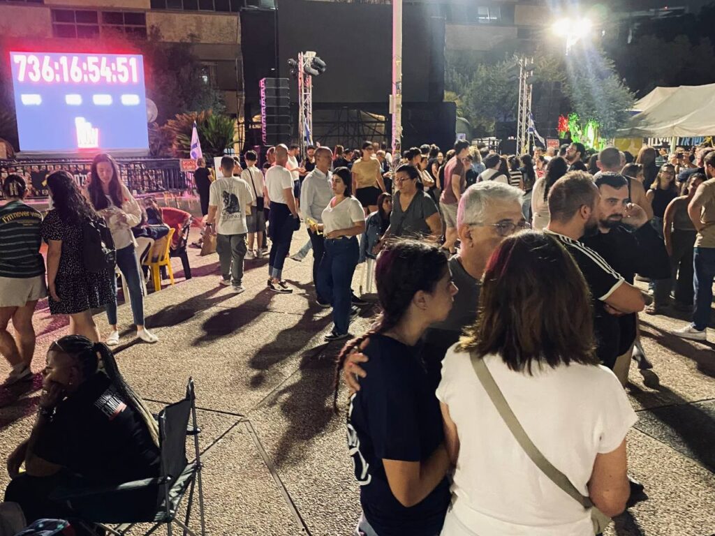 Начиная с 04:00 утра, на Площади Заложников в Тель-Авиве семьи заложников и израильтяне будут вместе ждали освобождения похищенных. На экранах транслировались прямые включения.