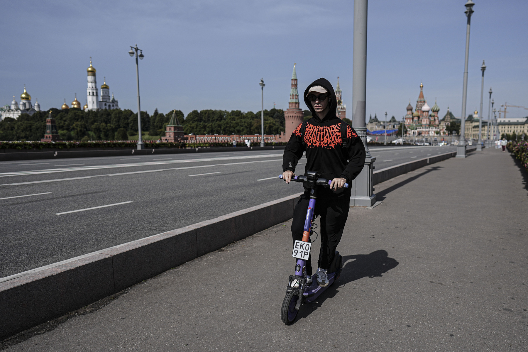 Фото: Мужчина едет на электросамокате по центру Москвы. Anadolu via Reuters Connect