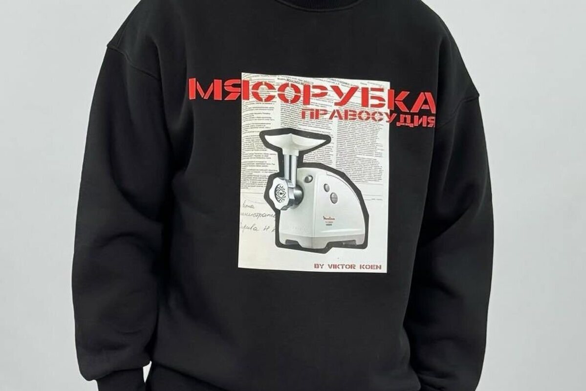 Фото: Мерч Виктора Коэна с надписью «Мясорубка правосудия»